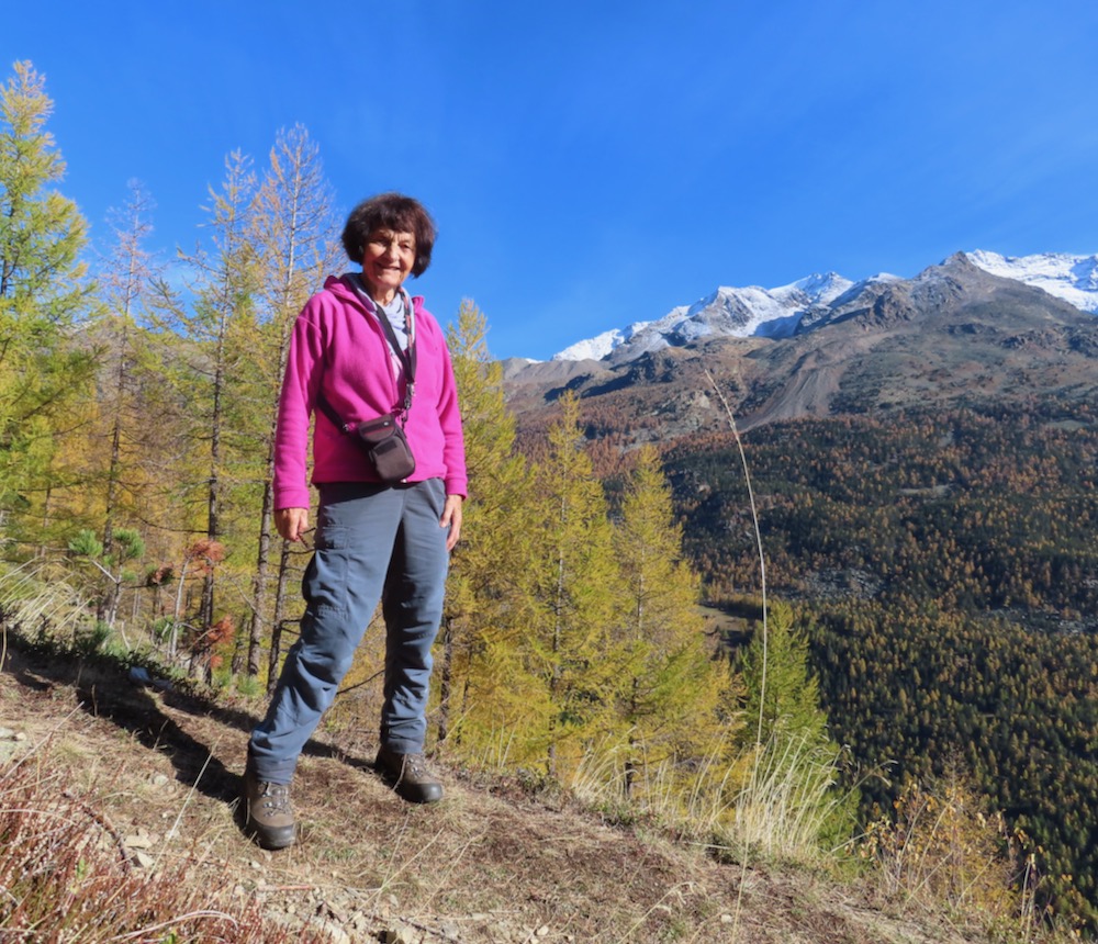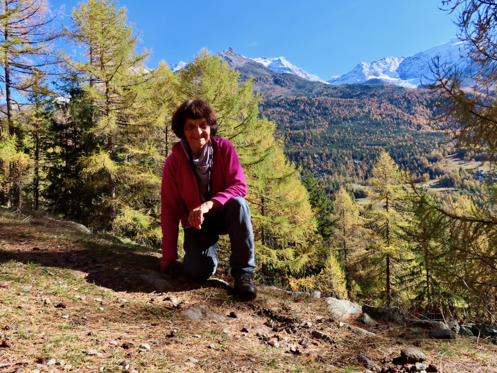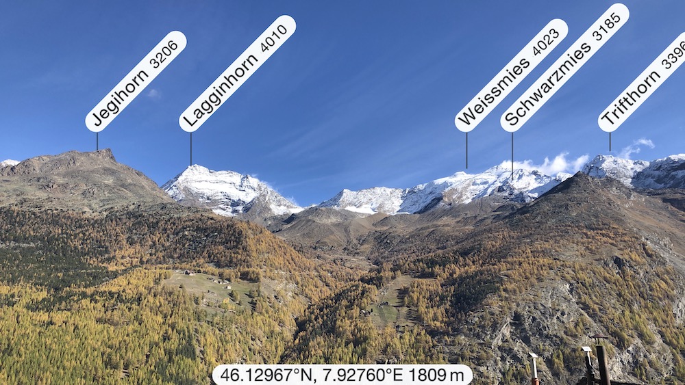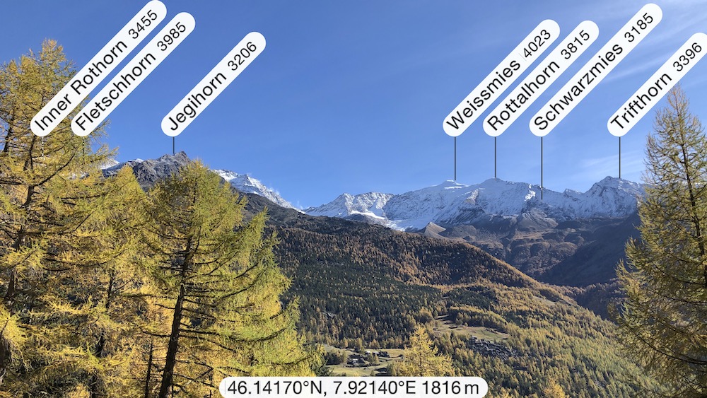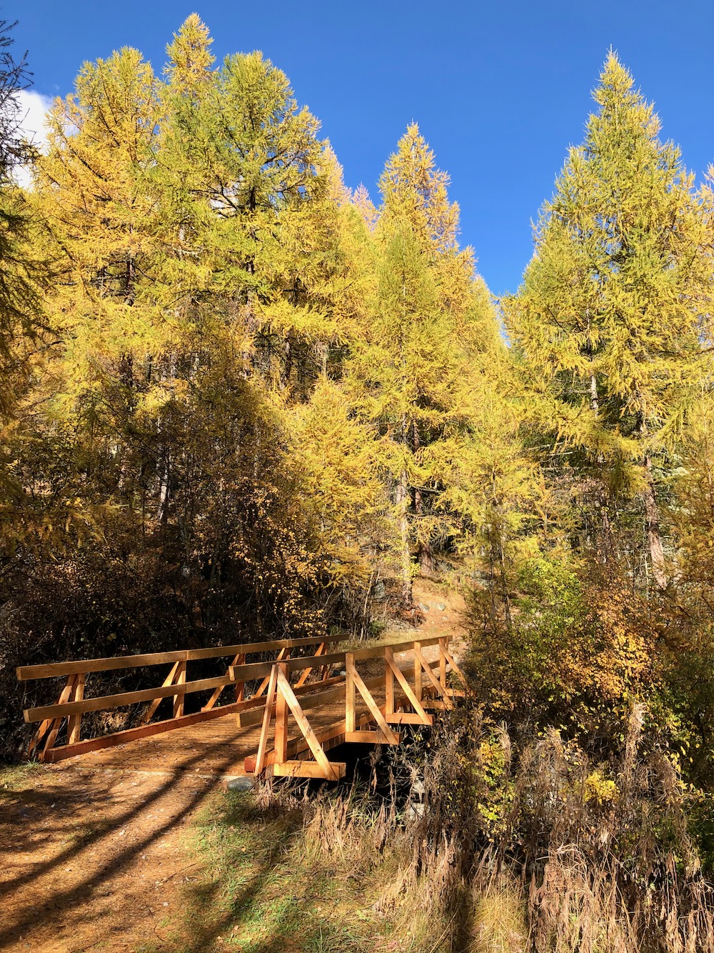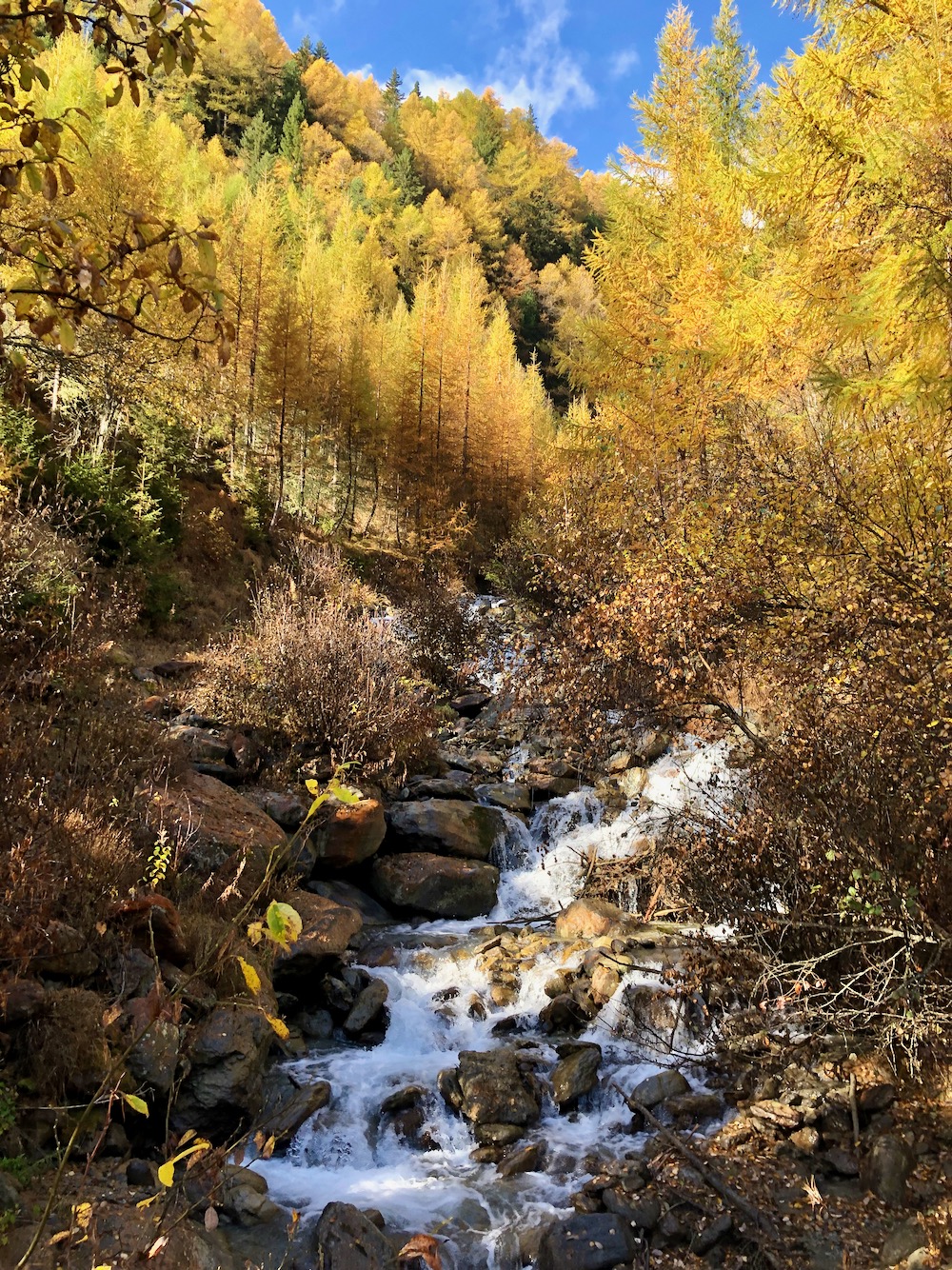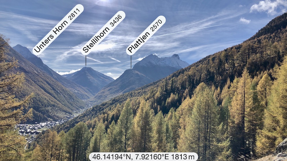 Das Wetter im Wallis soll heute schön sein: Ich fahre nach Bidermatten 1542m im Saaserttal, wo ich um 10.45h meine Wanderung beginne , die mich auf der orographisch linken Talseite hinauf bringt zum P. 1920m bringt, wobei ich zuerst auf der Strasse, dann auf einer Naturstrasse und dann auf einem Wanderweg gehen kann. Dieser Aufstieg durch den herbstlichen Lärchenwald ist sehr schön und bietet Ausblicke auf die anderen Talseite, die dominiert ist vom Fletschhorn, Lagginhorn und Weissmies.