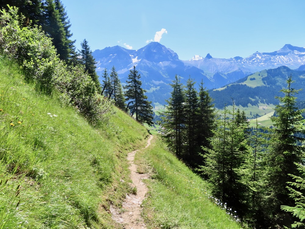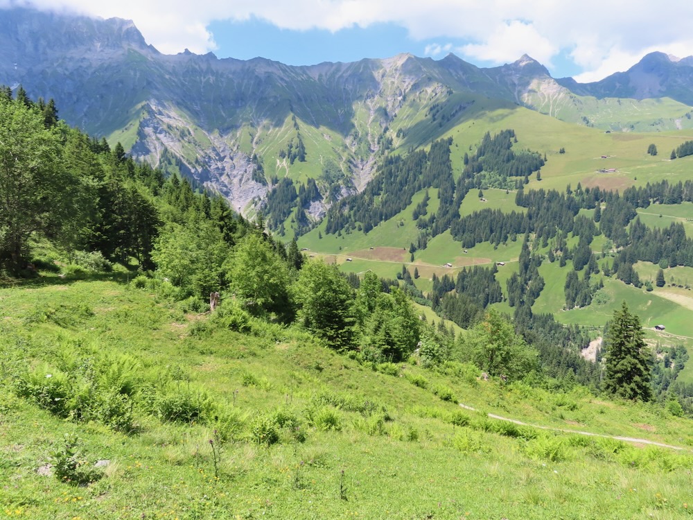 Zuerst trinke ich auf der Restaurantterrasse in Ruhe einen Kaffee, bevor ich mich dann an den geplanten Abstieg über die Tschentegge mache.Dabei lasse ich mir Zeit zum Fotografieren und Bestaunen der Landschaft. Etwas enttäuscht bin ich vorerst wegen den Alpstrasse und noch mehr vom Hartbelag ( aber ich habe schon Verständnis dafür).Aber ich bin froh, als ich um 13.40h auf den schmalen Wanderweg abbiegen kann. Der Wegabschnitt zwischen diesem Punkt und dem Höreli i 1520m ist wirklich sehr schön und abwechslungsreich. Danach nehme ich den unteren Höreliweg, der mich zurück nach Adelboden bringt, wo ich um 15.25h den Bus nach Frutigen besteige.