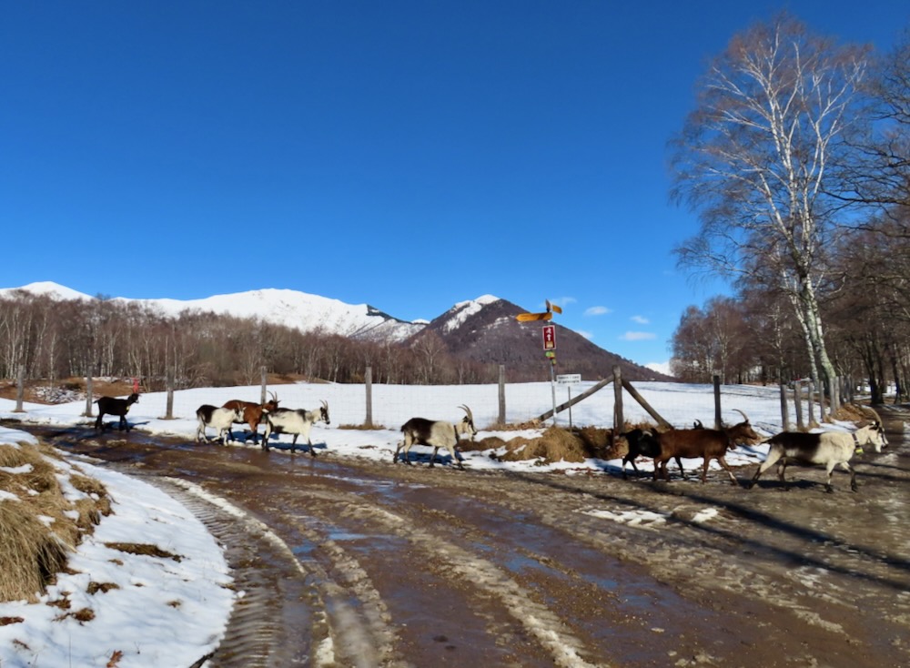 Heute möchte ich wieder einmal die Sonne sehen.Daher fahre ich ins Tessin und zwar nach Cademario. Diesen Ort kenne ich bereits und er scheint mir wegen der Sonnenexposition geeignet zu sein. Ich bin mir noch nicht ganz im Klaren, wie ich die Wanderung gestalten möchte. In Cademario liegt noch etwas Schnee, was mich erstaunt.Ich wandere auf dem Wanderweg hinauf in den Wald. Die recht nasse Waldstrasse führt mich zur Alpe Agra 904m. Hier springen mir gerade Ziegen von einer loben gelegenen Weide entgegen. Sie verteilen sich im Wald.