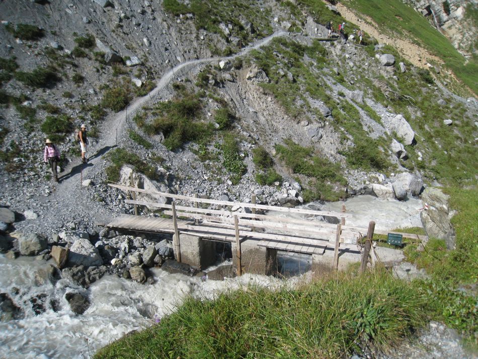 Wir überqueren auf einer soliden Brücke die mächtige rauschende Tschingel Lütschine, die von den Bächen des Tschingelgletschers gespeist wird. Welch eine wilde und urtümliche Berglandschaft !