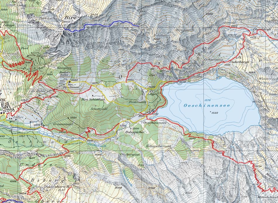Bergwanderung vom Oeschinensee über Läger auf den Heuberg zum Oberbärgli und hinunter über Unterbärgli zum Oeschinensee.