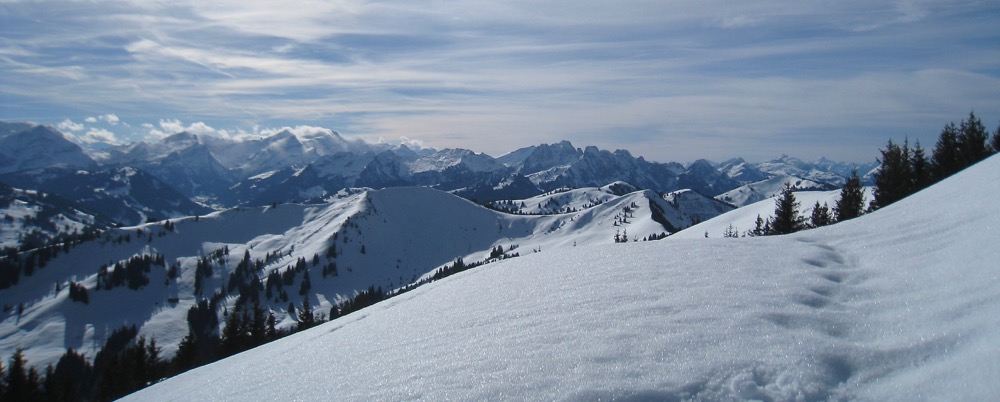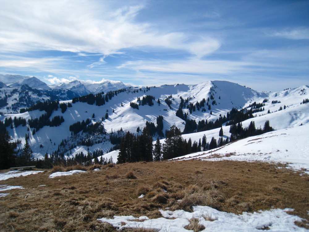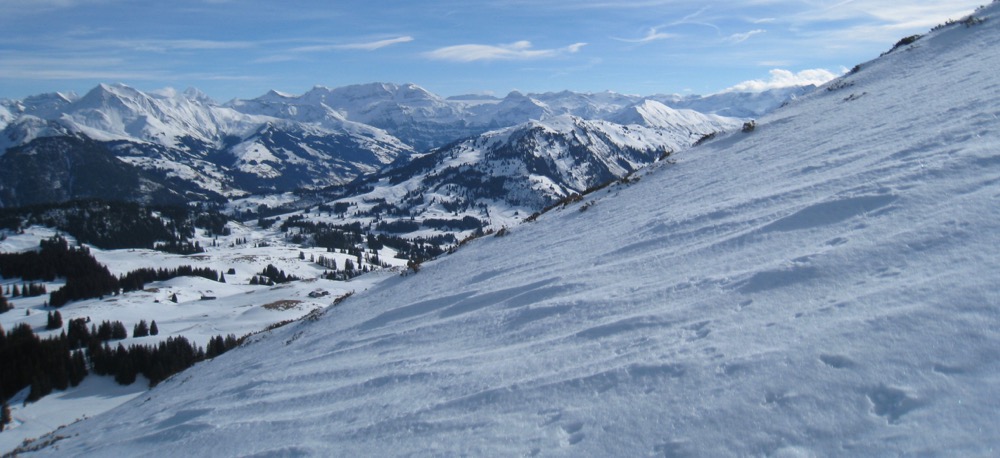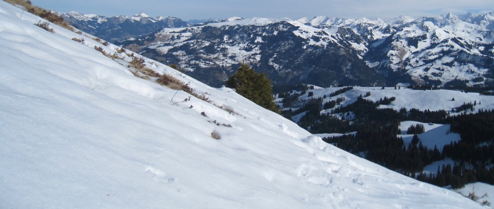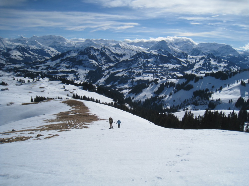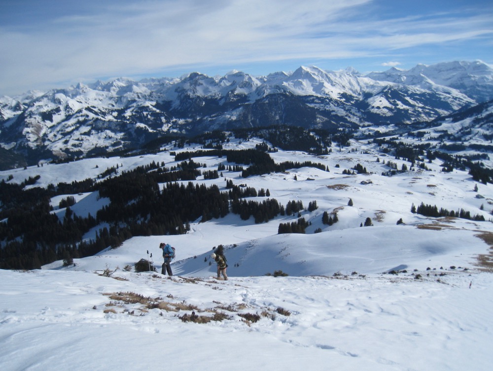Schneeschuhtour vom Sparenmoos auf den Hundsrügg und hinüber zum Jaunpass