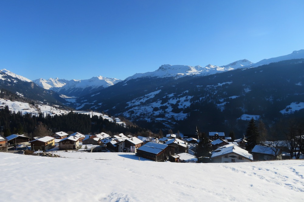 Da es auch in Pany zuwenig Schnee hat, wäre ich ohne Bus nicht nach Tratza gekommen, denn ich würde nie auf den Teerstrassen hinaufsteigen.