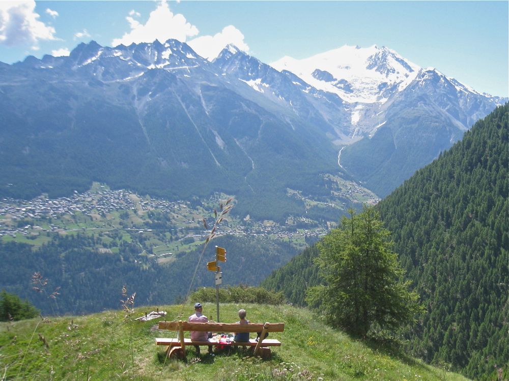 Dies war eine sehr schöne Hangwanderung und wir konnten die Berge der anderen Talseite sehen, wo wir gestern gewesen sind (Grächen)