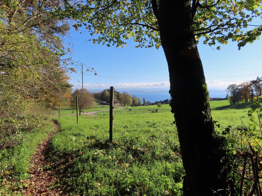 Aber nur in der Nähe von Boudry komme ich an einem Rebberg vorbei. Ansonsten verläuft diese Wanderung meist im Wald. Wegen der grossen Entfernung sieht man nicht of auf den See. Die Alpensicht ist heute nicht gut. erst auf der Busfahrt zurück werde dich die drei grossen Berner sehen!